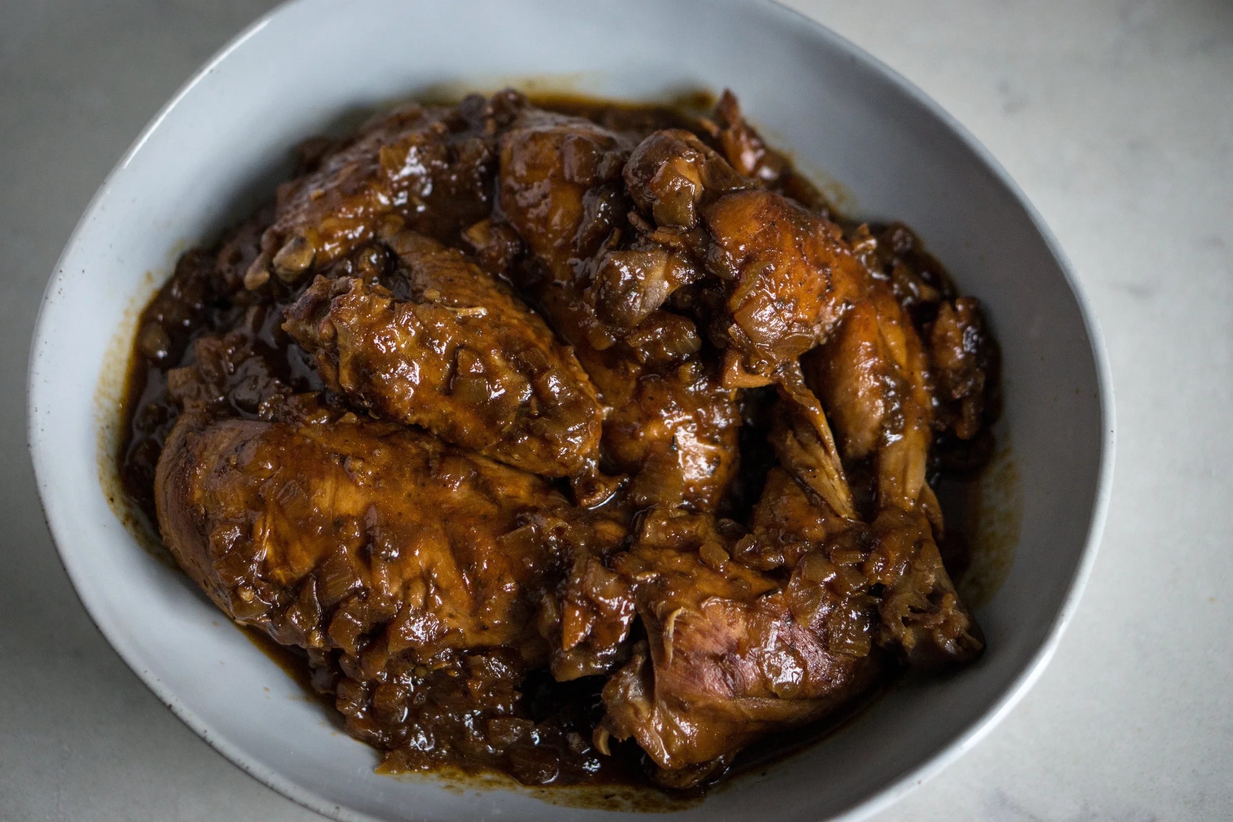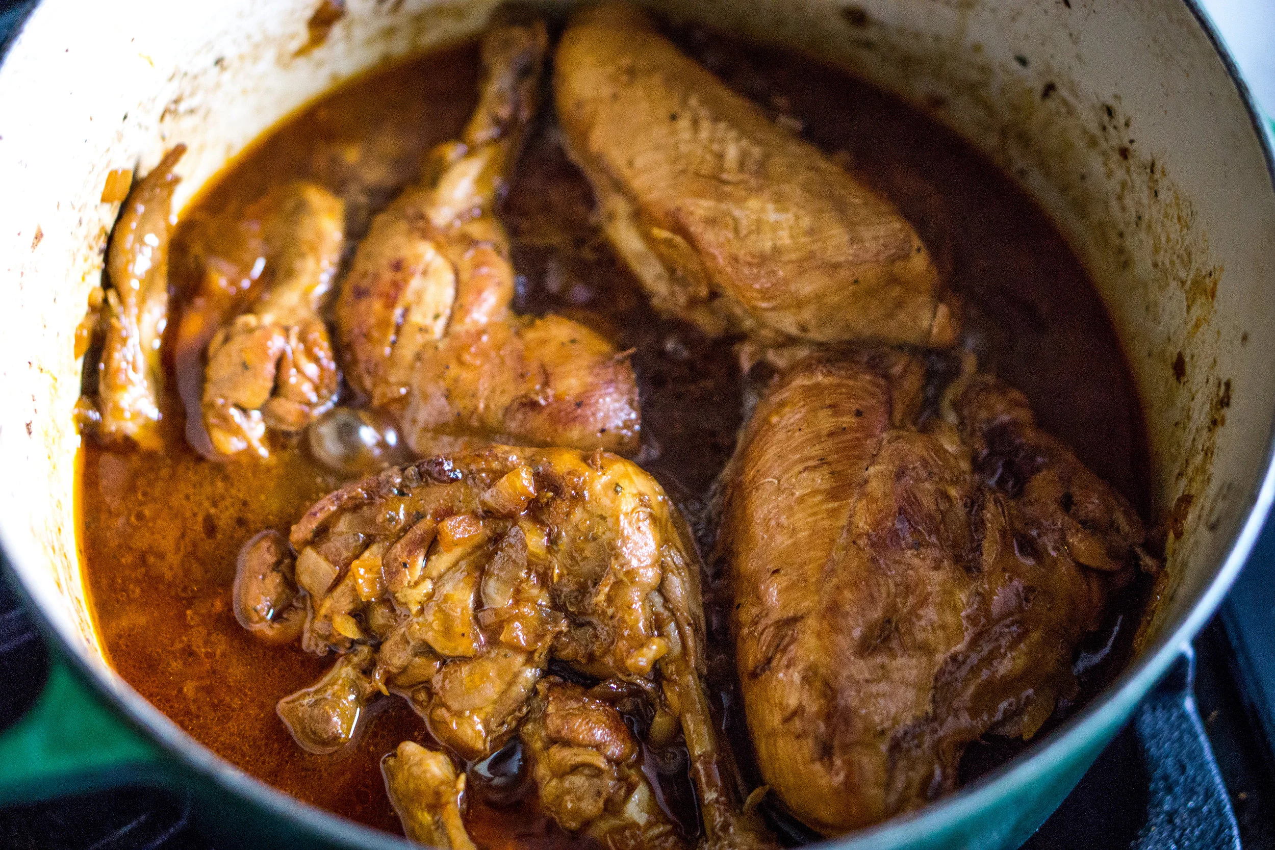 Once reduced you can add the chicken back into the pot or pour the gravy over the chicken.